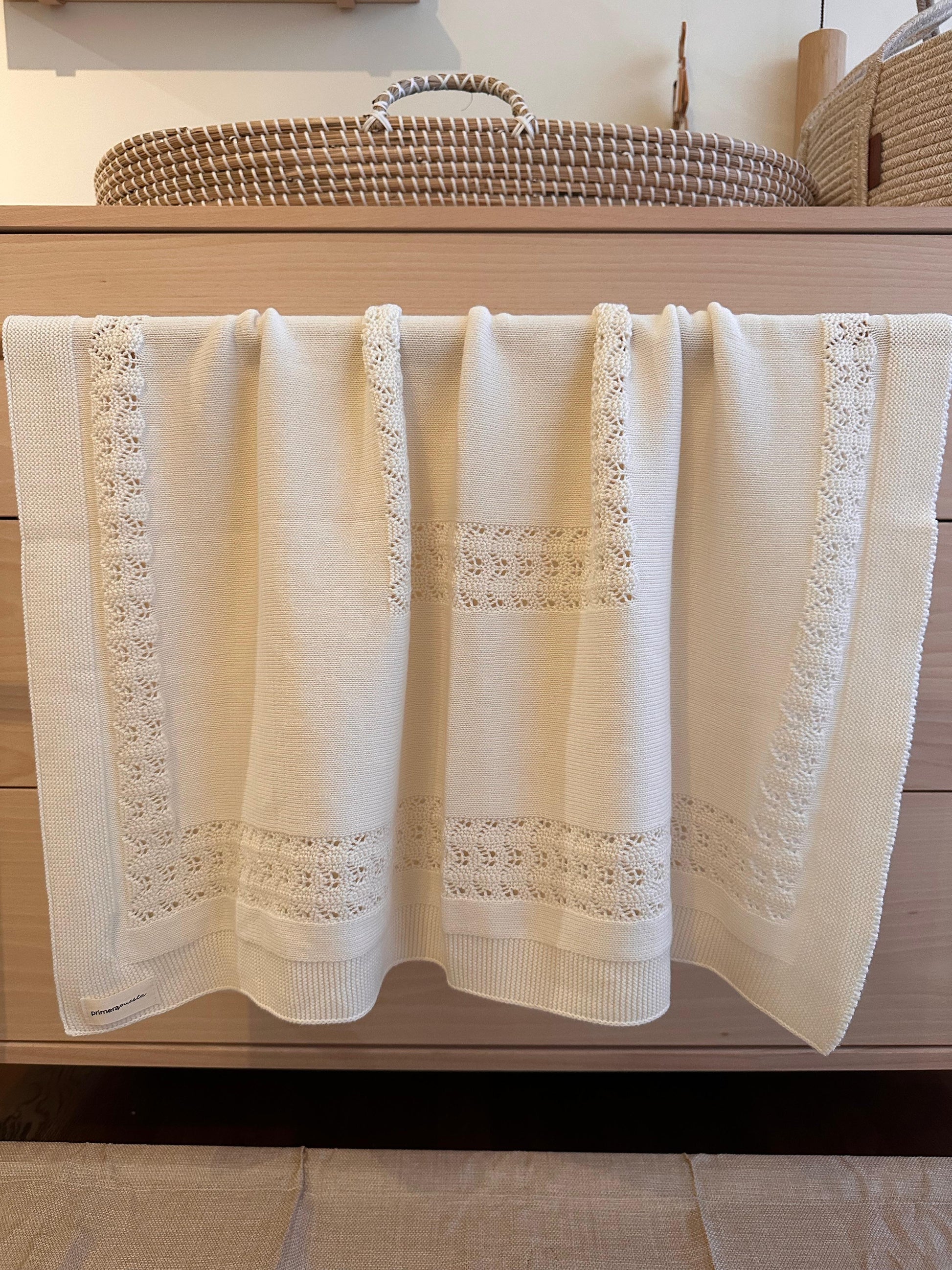Clásicas, suaves y atemporales. Nuestras mantas de algodón 100% están tejidas con delicados calados que reflejan el estilo delicado y elegante de Primera puesta. Perfectas para los primeros días, paseos o como regalo especial. Hechas es España.